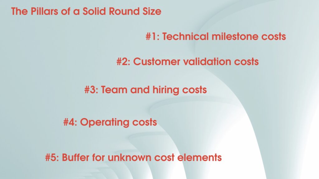 This isn’t a trivial question. Particularly in deep tech, your raise size is almost as big a risk as your technology itself. The classic trap: Many founders know approximately what they need to demonstrate at the next stage. They look around at peer companies and market benchmarks for their stage and sector. They define a number that feels “enough” and fits with current trends, and launch their raise.
